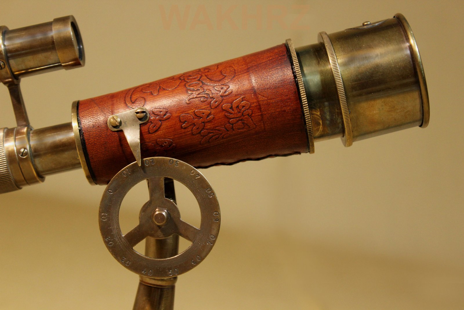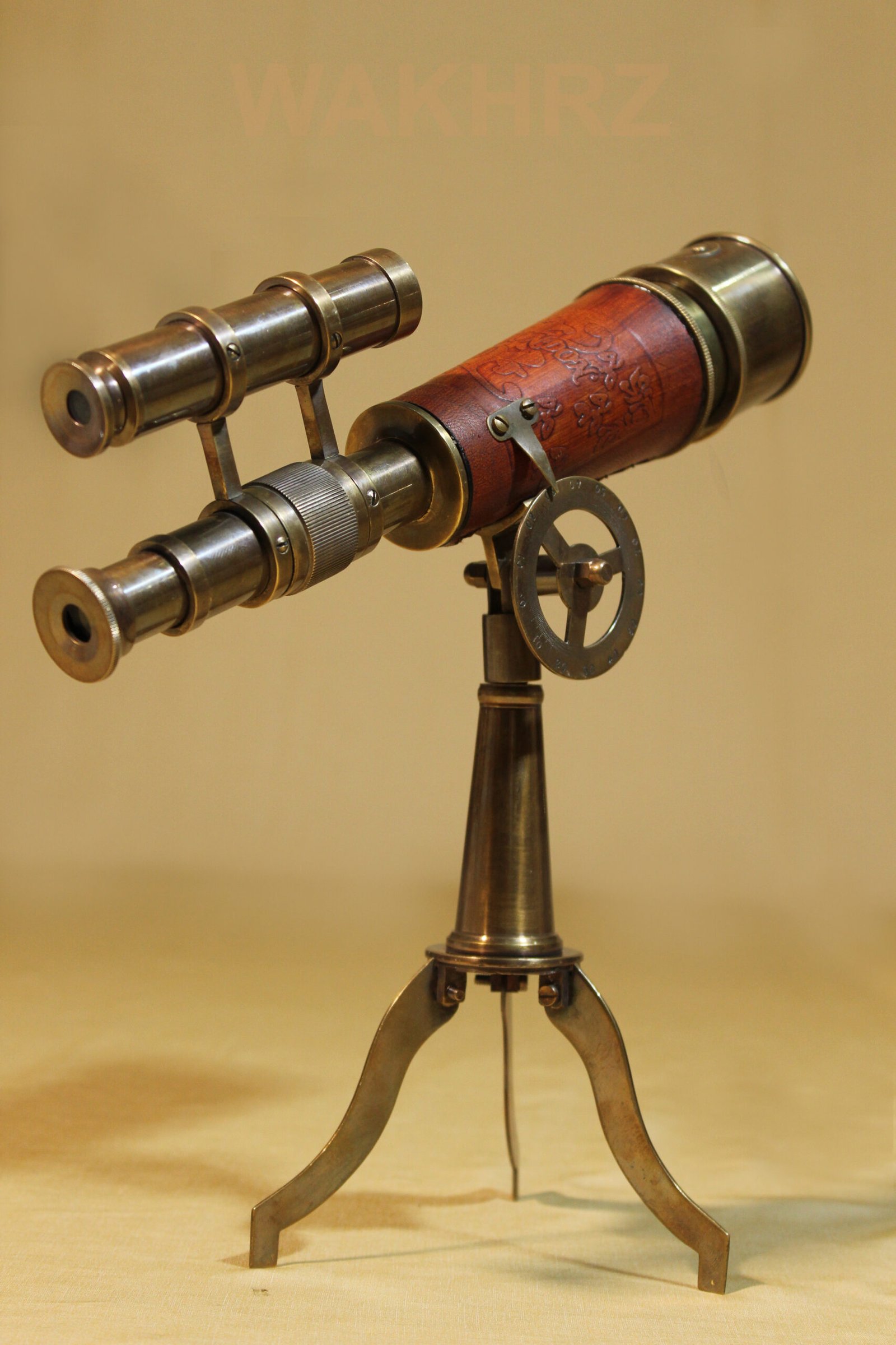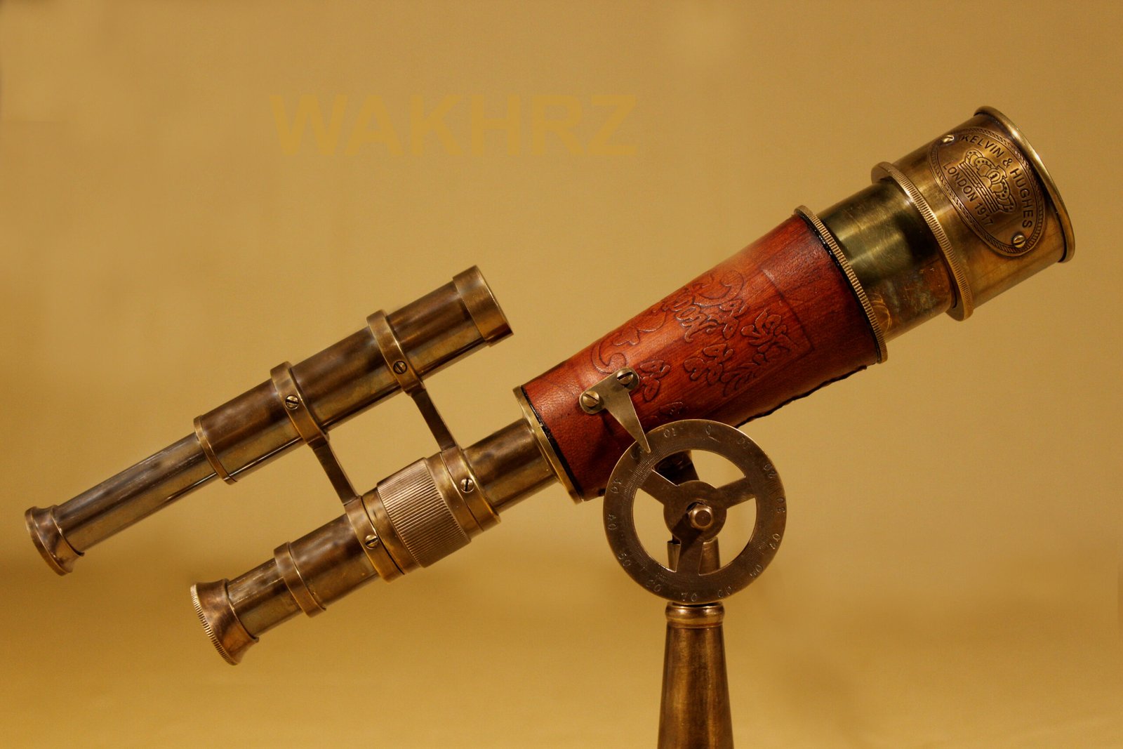 Description:- WWII Bronze small telescope with tripod stand. KELVIN & HUGHES LONDON 1917 badging telescope. This 19th century gives better & detailed view. And leather is well stitched around the telescope with DOLLAND LONDON 1920 badging. This is a lovely 2 draw telescope, About DOLLAND LONDON was founded by Peter Dolland in 1750 on Vine Street. And in 1985 Admiral Nelson purchased a Dolland Telescope.