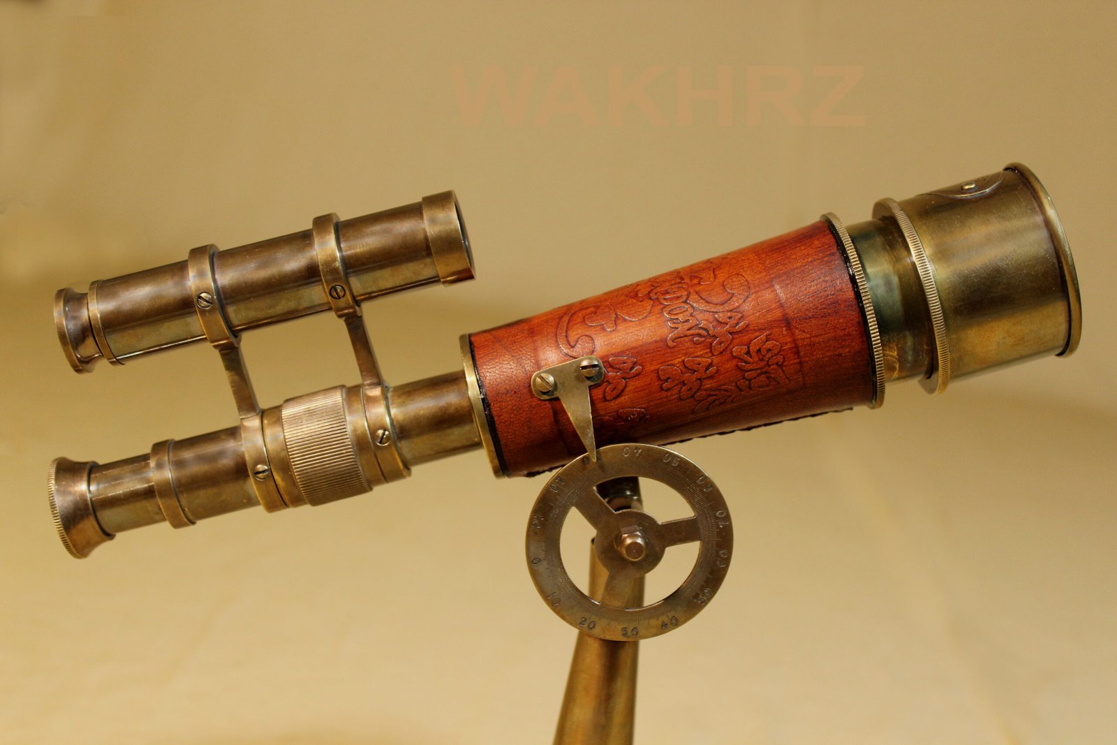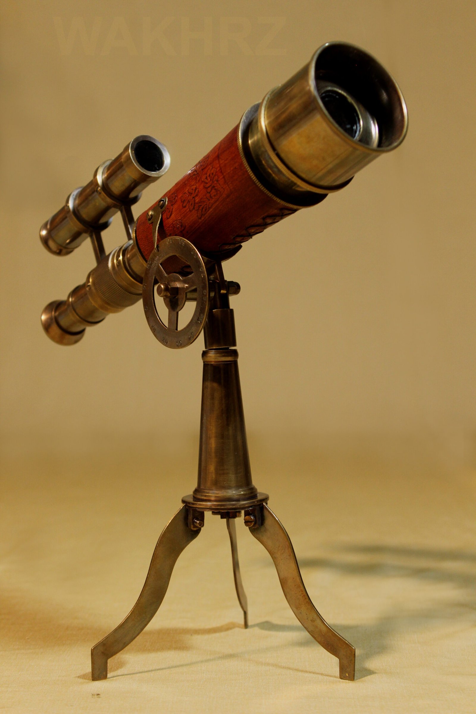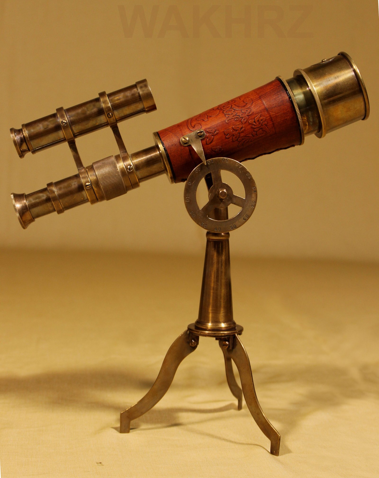 Description:- WWII Bronze small telescope with tripod stand. KELVIN & HUGHES LONDON 1917 badging telescope. This 19th century gives better & detailed view. And leather is well stitched around the telescope with DOLLAND LONDON 1920 badging. This is a lovely 2 draw telescope, About DOLLAND LONDON was founded by Peter Dolland in 1750 on Vine Street. And in 1985 Admiral Nelson purchased a Dolland Telescope.