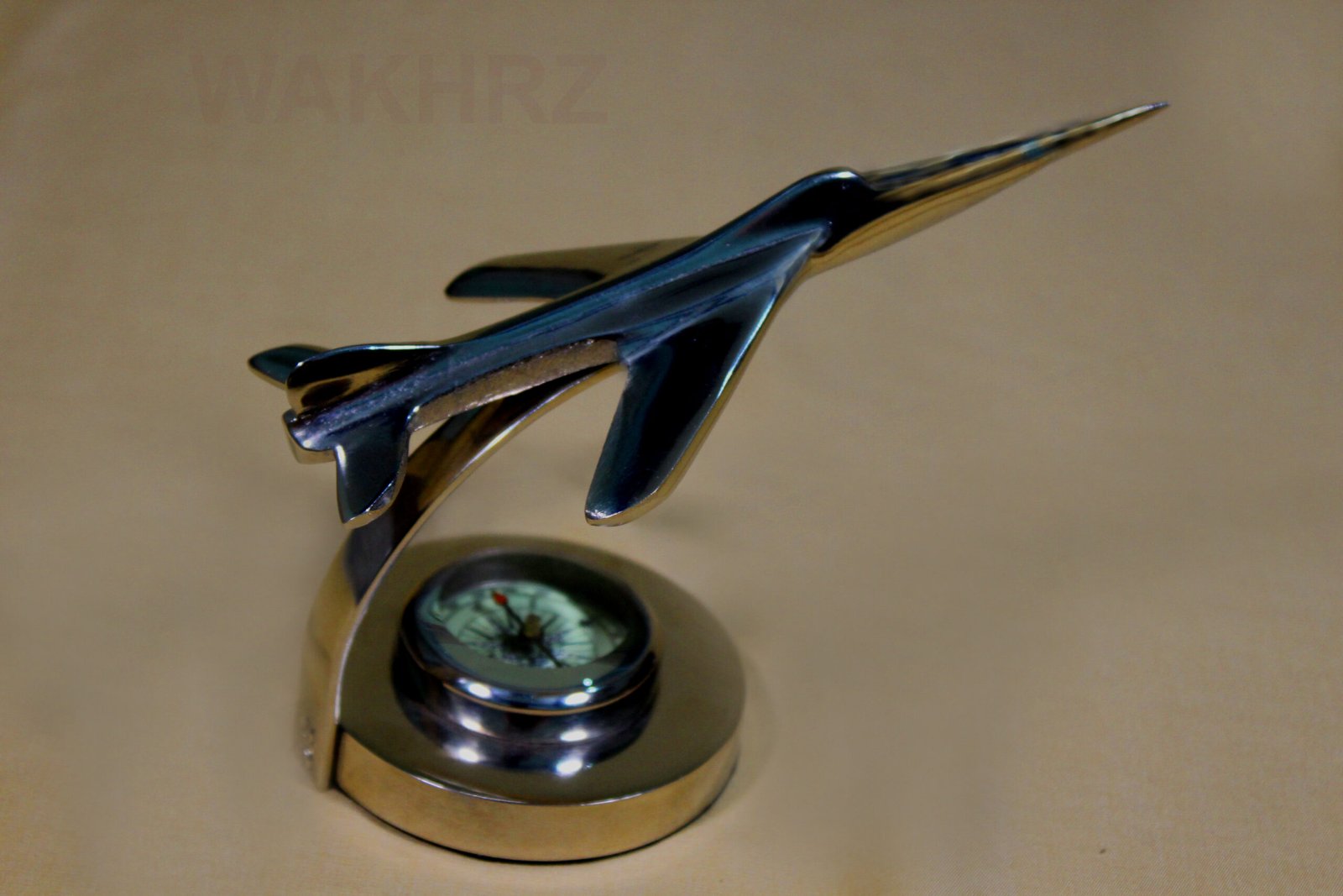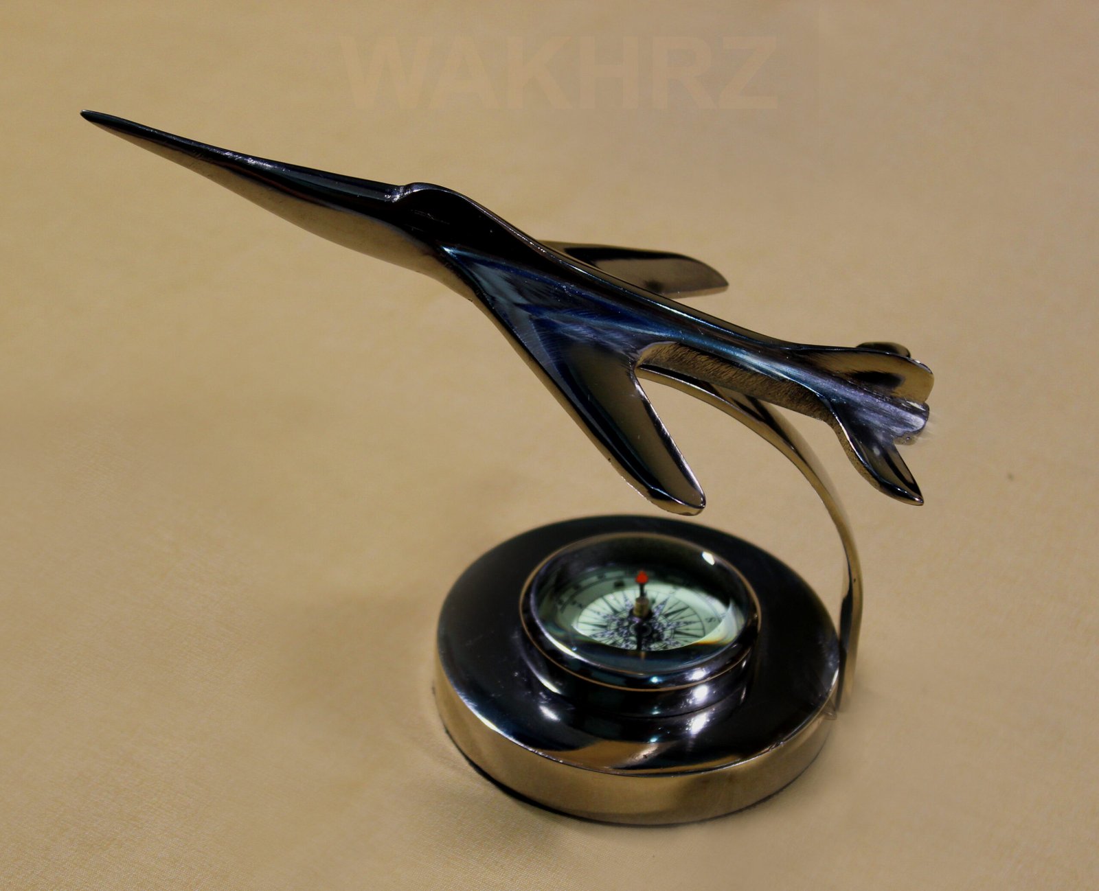 One of the most beautiful jet made. This piece has a great balance & details. All are covered with riveted aluminum. This Jet comes with silver chrome Polish. And this jet comes with a compass base.